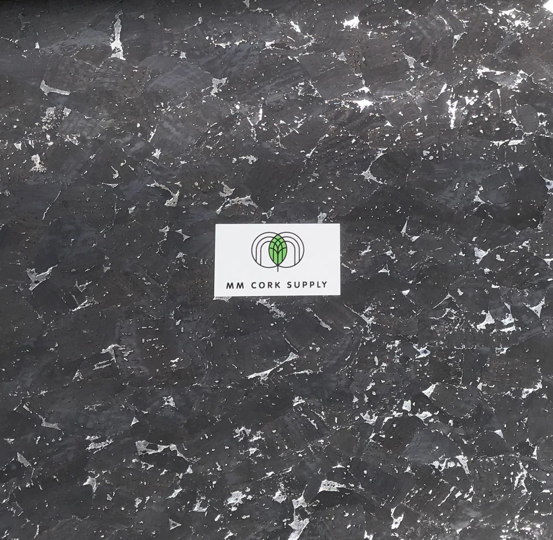 This cork fabric has charcoal base same in colour as our grey - charcoal cork, but with shiny silvery flecks throughout.
