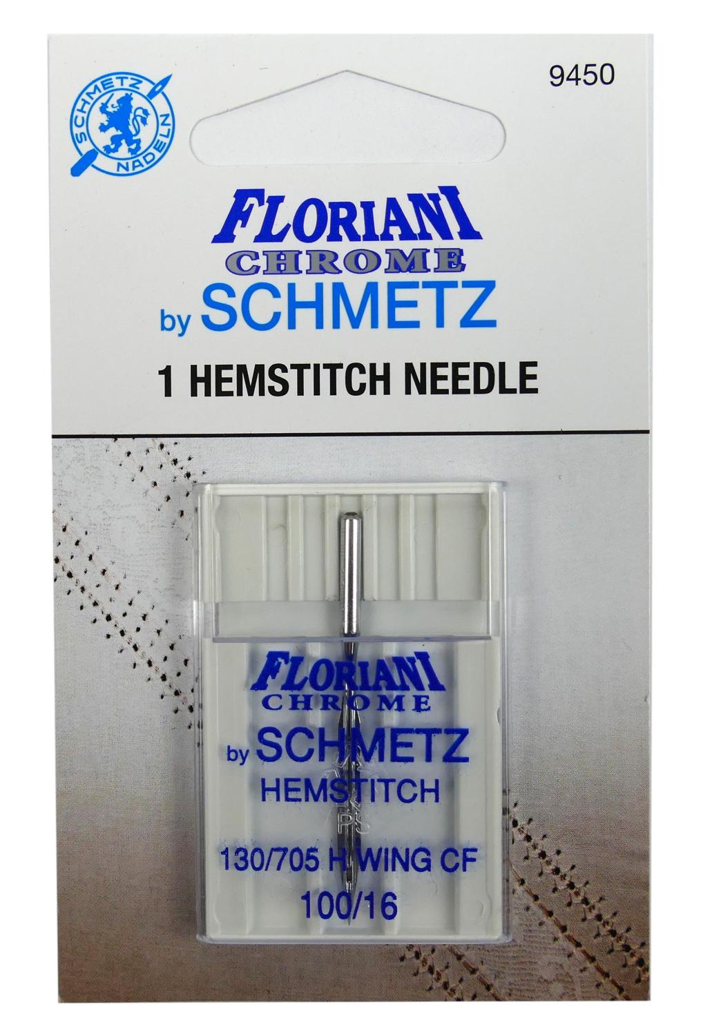 The SCHMETZ Hemstitch sewing machine needle has a wing on each side of the needle. At stitch creation, the wings spread the fabric for a unique stitch. The Hemstitch needle moves easily through light to medium weight loosely woven fabrics. Popular for heirloom sewing and decorative cutwork, the Hemstitch needle can be used in multi-media quilts. Twin Hemstitch needle also available.