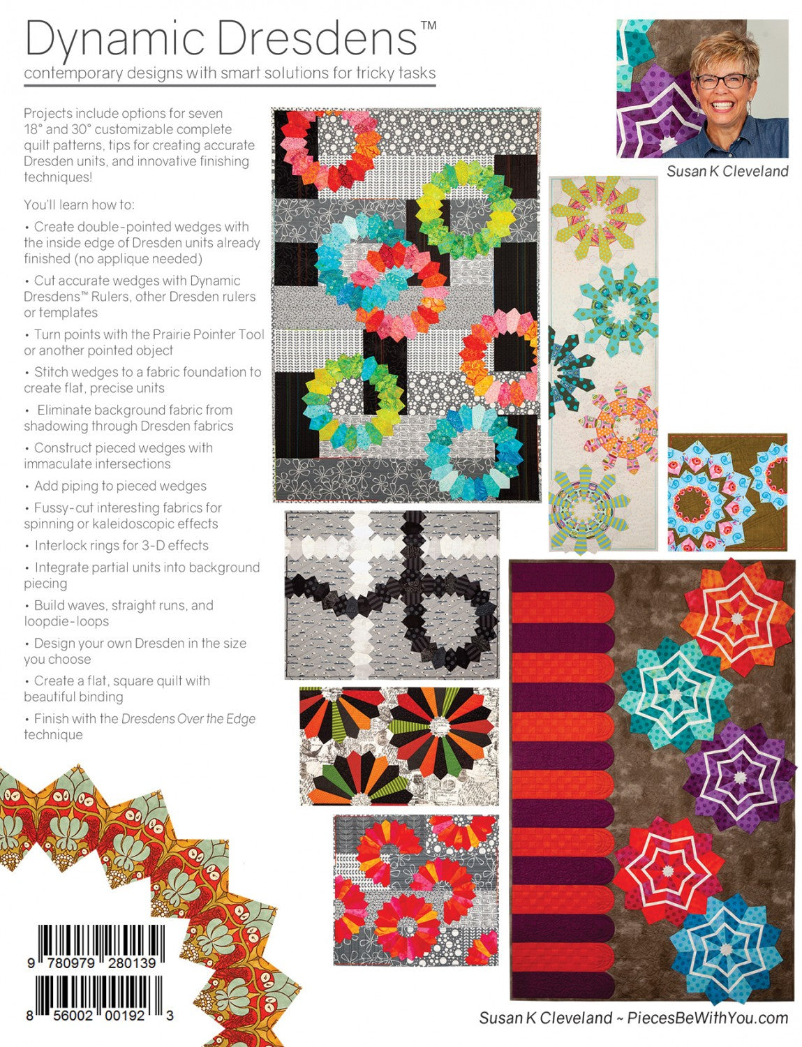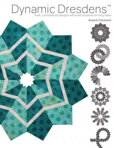 Dynamic Dresdens is 96 full color pages with a pull-out sheet and accurate, clear instructions so you will be able to build amazing quilts and thoroughly enjoy the process! Projects include options for seven customizable quilt patterns, tips for creating accurate Dresden units, and innovative finishing techniques. All patterns are offered for both 18 and 30 degree Dresden rulers, and instructions are color-coded to make it easy to follow the right one for your ruler choice.