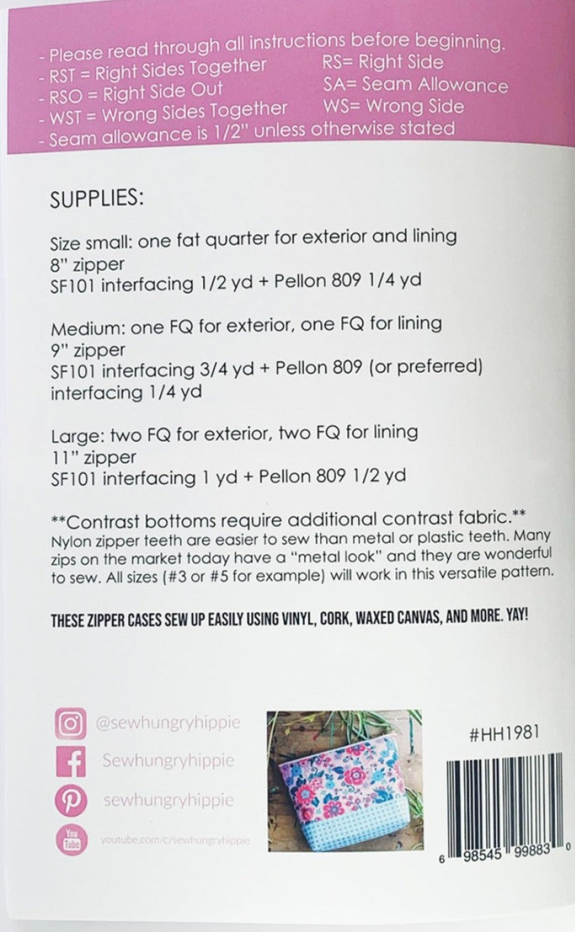 Sewing Zipper Cases is EASY with this sewing pattern. These cases are easy to sew up and make great gifting or selling. This pattern has instructions for three sizes, complete with digital drawings are full color photos. Tips and tricks are highlighted throughout to help you through the making process. Perfect for vinyl, cork, canvas, or quilting cotton.
