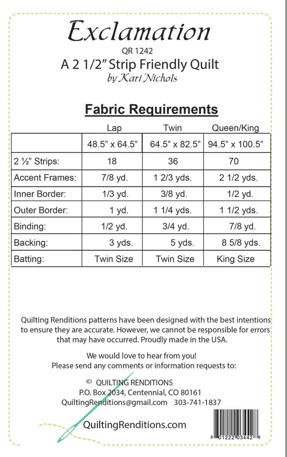 A 2 1/2" strip quilt perfect for using your favorite strip sets! Three sizes (lap, twin, queen/king) included to add to the versatility. Fun blocks to mix the fabrics in! 18, 36 or 70 strips to help use up your stash or the new set you just got.