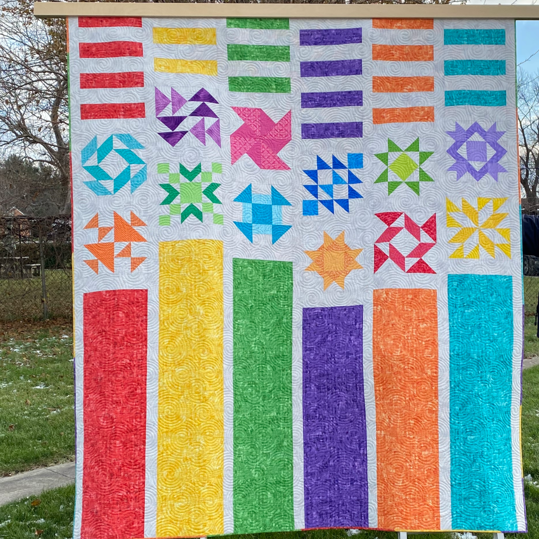 This kit includes everything except the 12 blocks to complete the quilt top and binding.