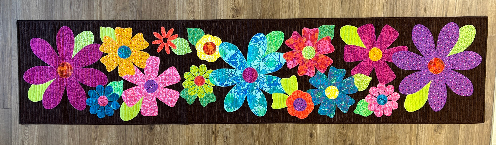 This kit makes the Fleurs table/bed runner applique pattern! There is enough fabric in here to do all the applique! Just add 2 metres of background and binding fabric on top of this kit to complete the quilt.