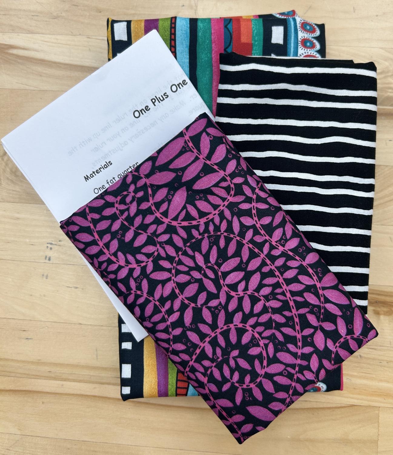A kit to make a table topper with a mitred stripe or border print. A small project to practice your mitering skills! The kit includes instructions, one fat quarter, one metre of a stripe or border print, plus a binding fabric.