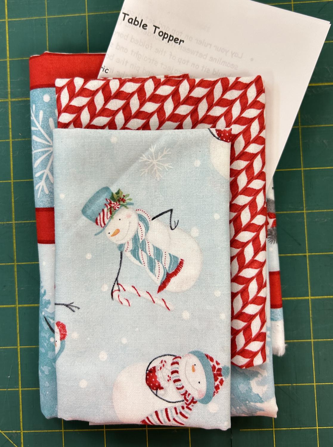 A kit to make a table topper with a mitred stripe or border print. A small project to practice your mitering skills! The kit includes instructions, one fat quarter, one metre of a stripe or border print, plus a binding fabric.