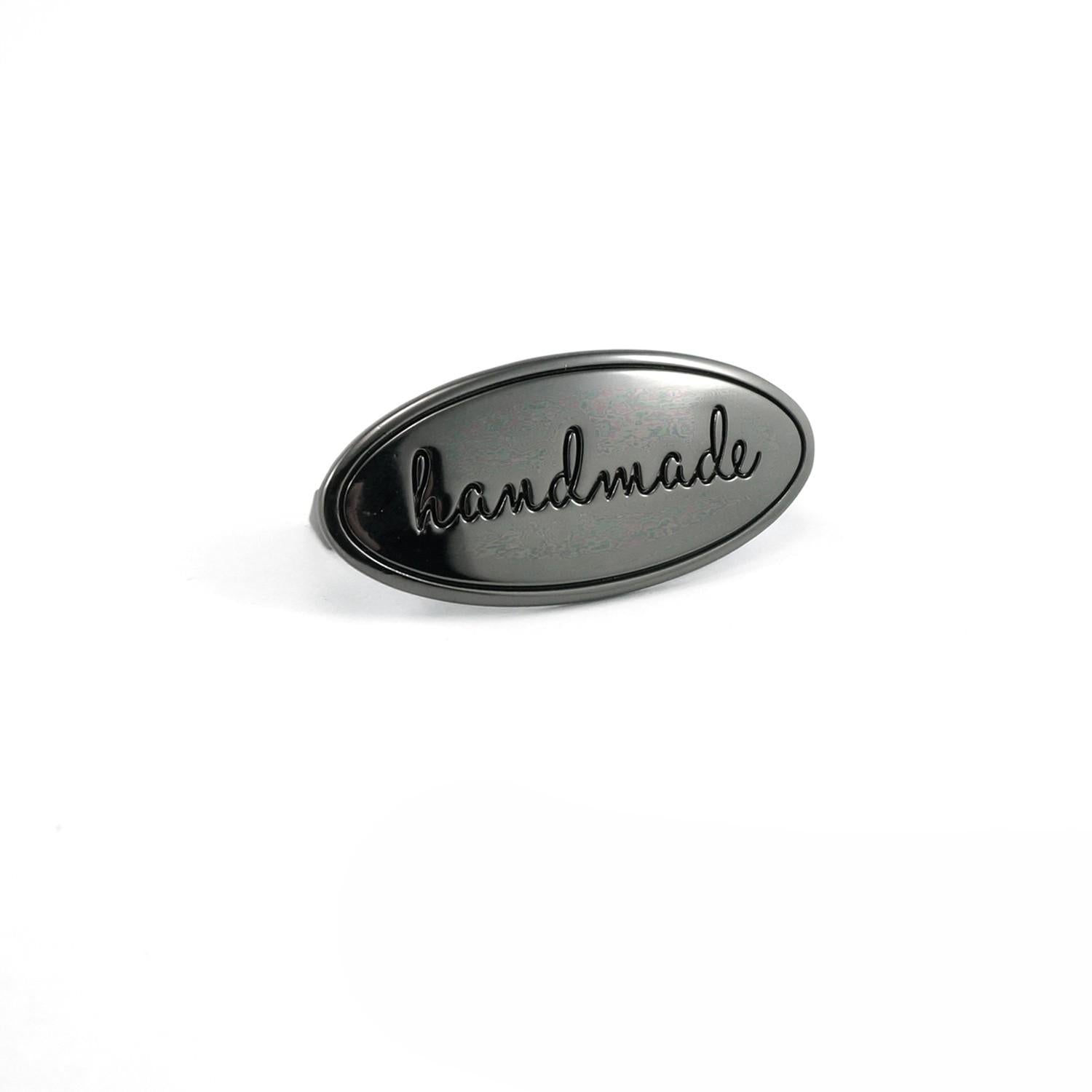 This slightly domed on the front, this oval metal bag label is stunning! It's professional looking, creates a focal point, and is very…. cool! These will look great on any bag, tote, lunch kit, or other handmade project. These look so gorgeous on cork, fabric, vinyl or leather. De-bossed with handmade in a beautiful script font. Attaches with two prongs on the back that fold over a metal washer. Measurements: 12.5 mm (1/2in) x 39 mm (1-1/2in) From Emmaline