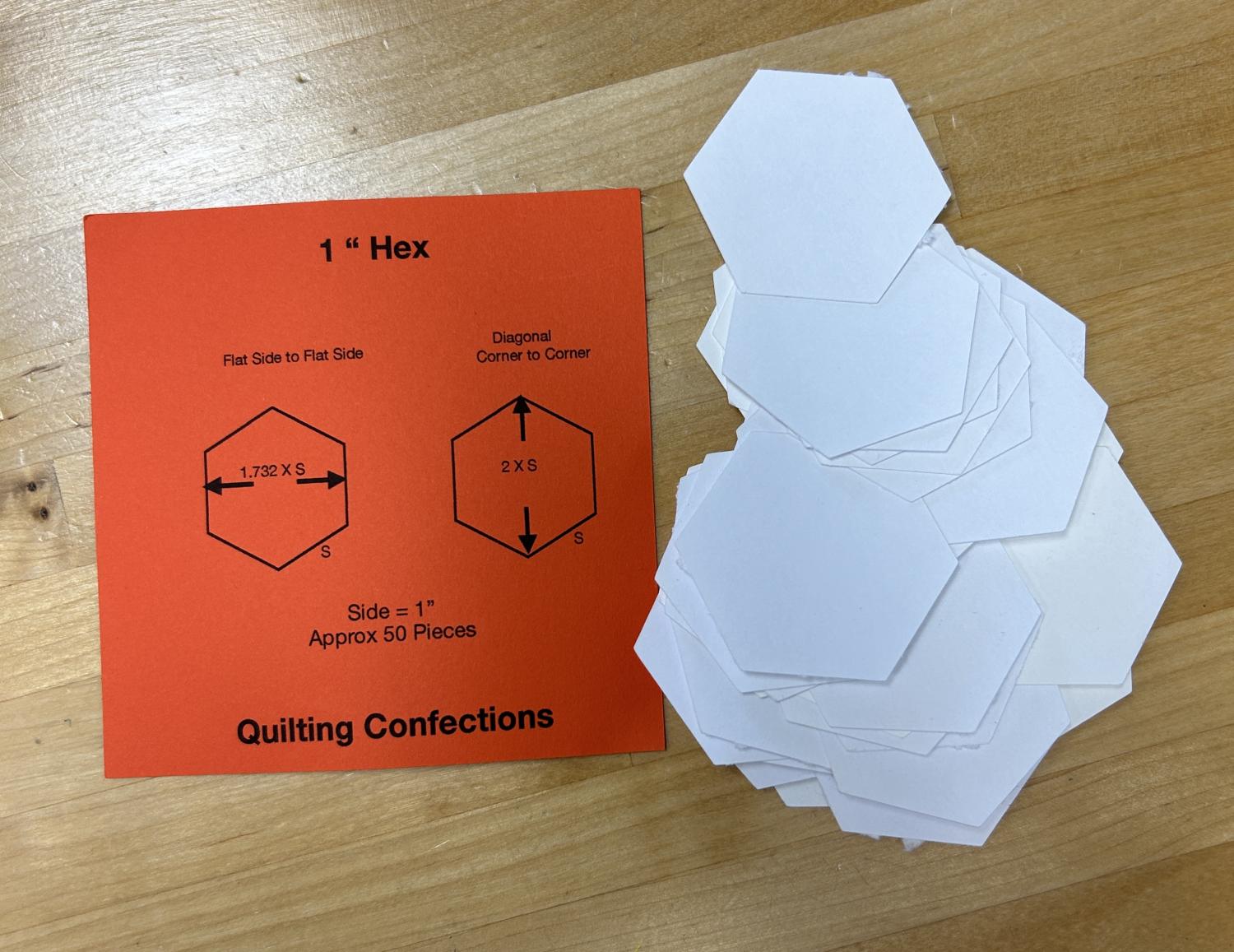 1" paper piecing hexagons, precisely cut from cardstock. Approximately 50 pieces inside the package.