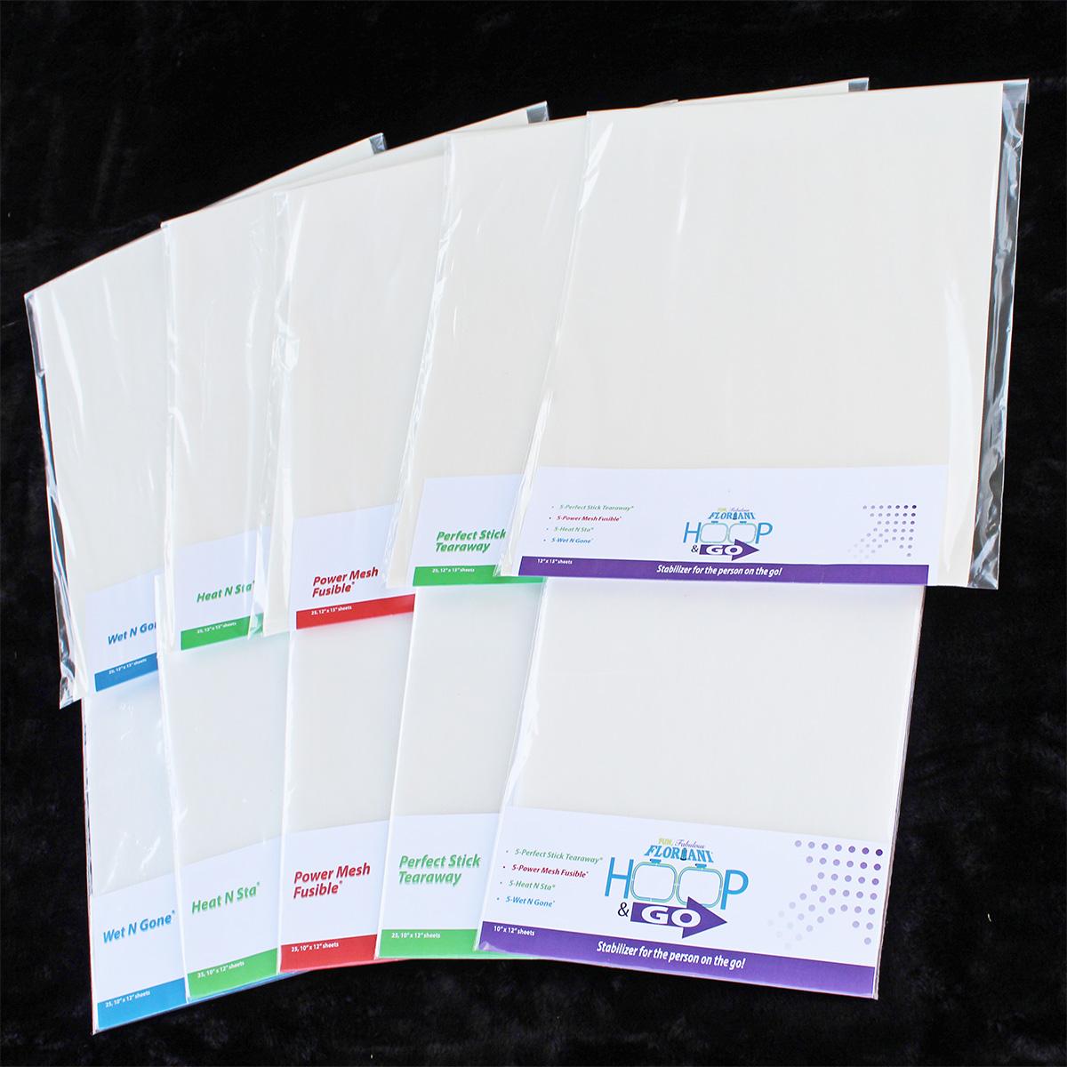 15" x 20" (20) Sheet Packs of Floriani Stabilizer, precut to fit a hoop so you can get straight to your sewing and embroidery!