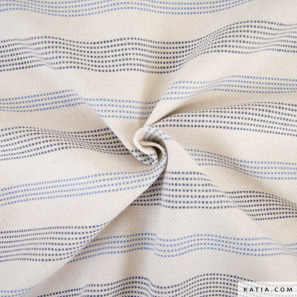 This Sea Colors Stripes Linen Cotton Recycled Canvas fabric by Katia Fabrics is a jacquard fabric featuring a charming striped effect in coastal shades on a natural off-white background. This item stands out for its composition, which includes 16% linen and a large proportion of recycled cotton, making it a sustainable and eco-friendly option. This rustic and natural fabric is ideal for a variety of projects, from tablecloths and curtains to cushions and decorative accessories. Its combination of linen and recycled cotton offers a soft and durable texture, perfect for creating long-lasting and stylish pieces. Take advantage of this Stripes Sea Colors Linen Cotton Recycled Canvas fabric for your sewing projects and enjoy its benefits in terms of quality, sustainability, and design.