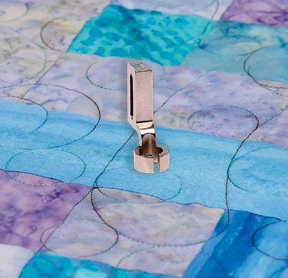 Quilt beautiful designs using rulers and acrylic templates with the Open Toe Ruler Foot. This 1/2” wide foot is designed to give you a 1/4” radius from the needle and the 3/16” height of the foot allows for stability when using low shank style rulers.