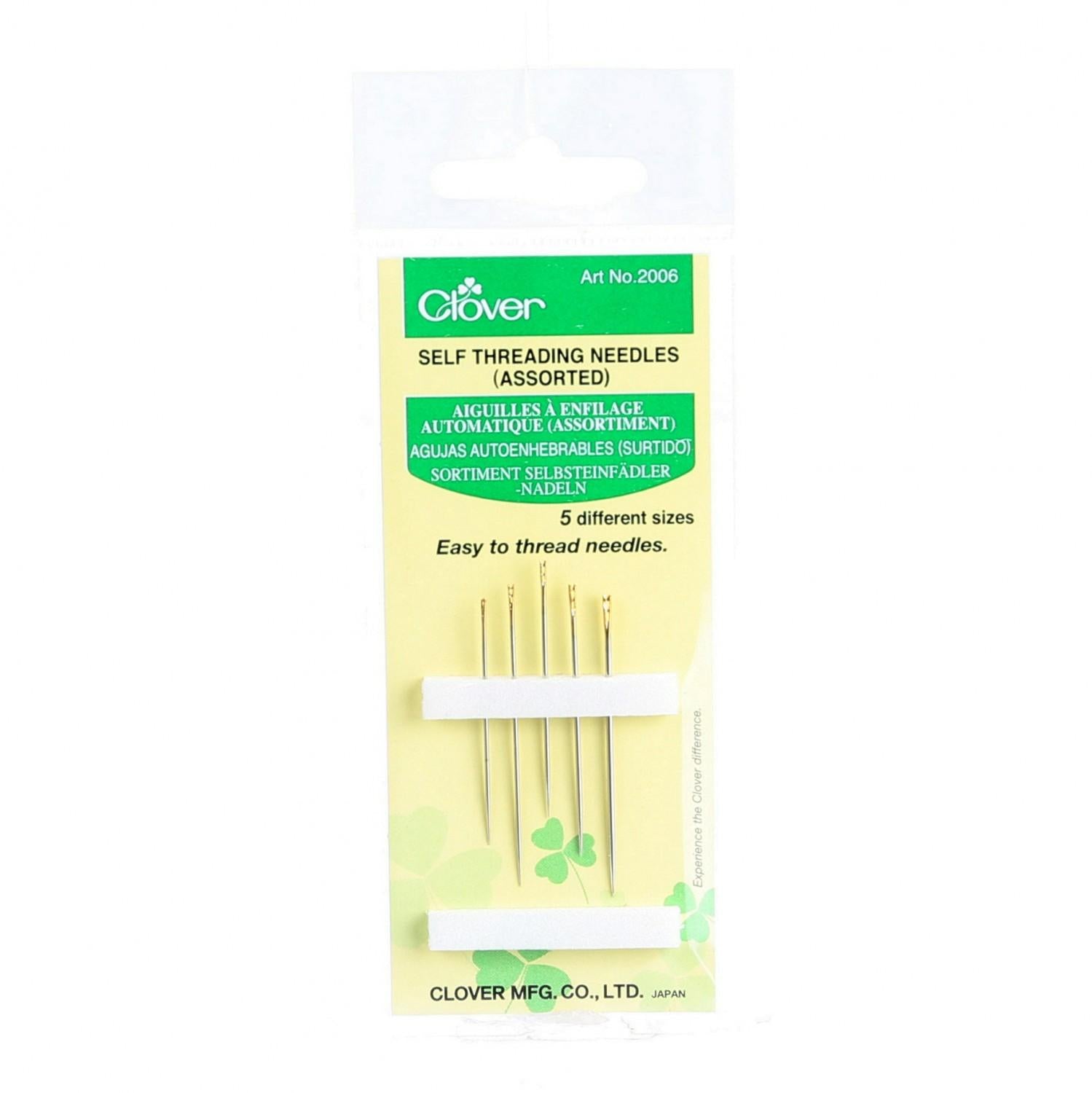 Simply place the thread at the top of notch of the needle and then by pulling it down; the thread will go through the eye of the needle. 5 needles per package.