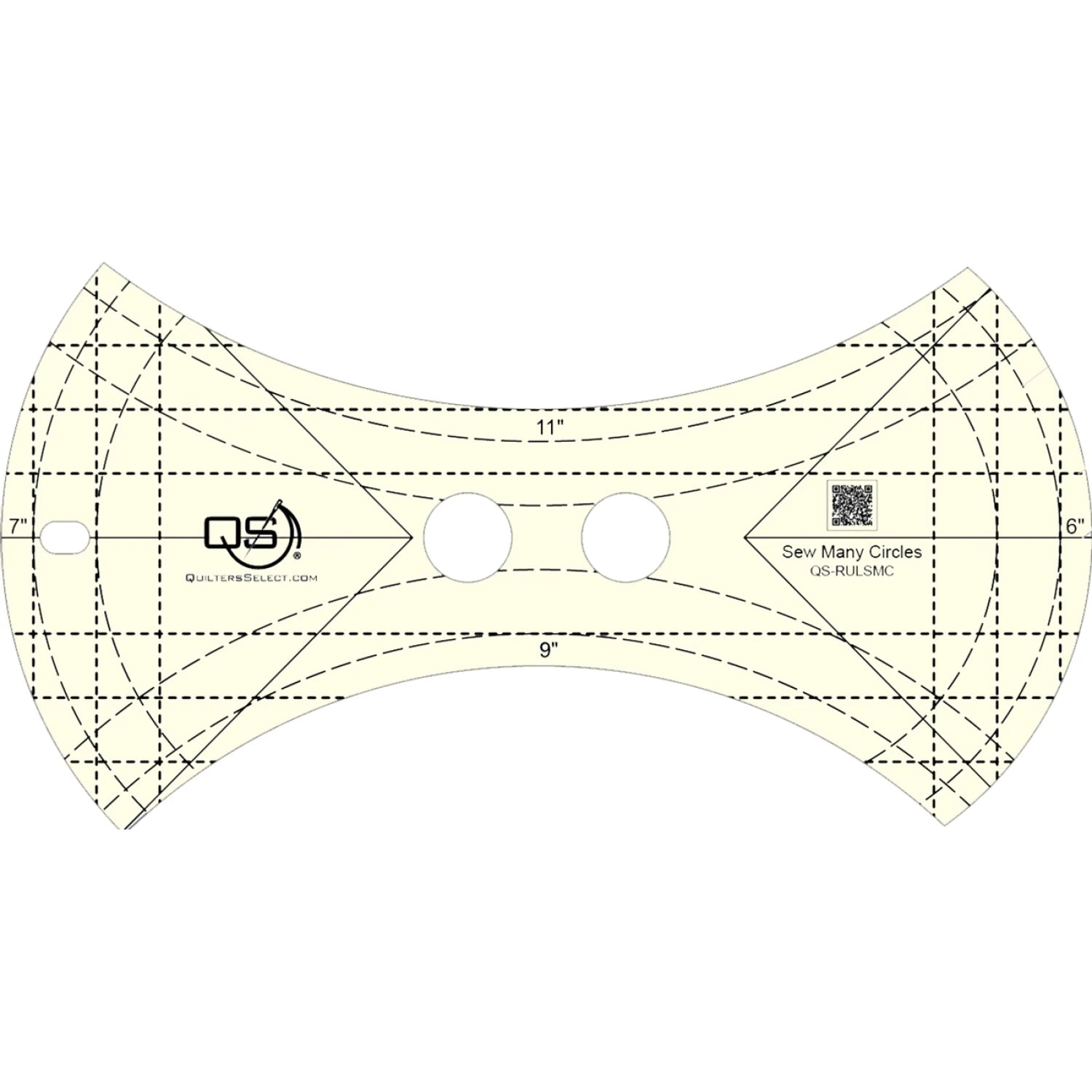 Sew Many Circles is a 6mm ruler for machine quilting using domestic or long arm machine. Features full non-slip coating to hold the ruler in place for accurate stitching. Features four different curves with alignment markings.