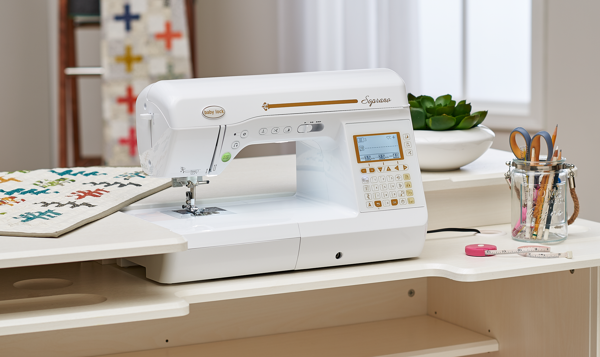 Looking for an easier place to start quilting? You’ve found it with the Baby Lock Soprano sewing and quilting machine. It’s simple to get started and even easier to finish quickly thanks to the Soprano’s user-friendly features. It also comes complete 300 built-in stitches and 16 feet, making sure you never miss a beat!