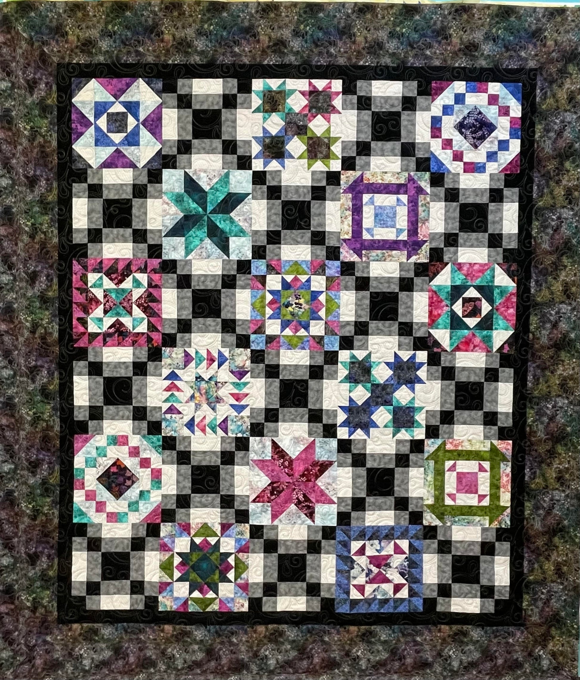 This quilt pattern was originally a quilt-along on Quilting Confections’ Facebook page in the spring of 2022. There are two each of eight different blocks and 15 setting blocks to complete this quilt.