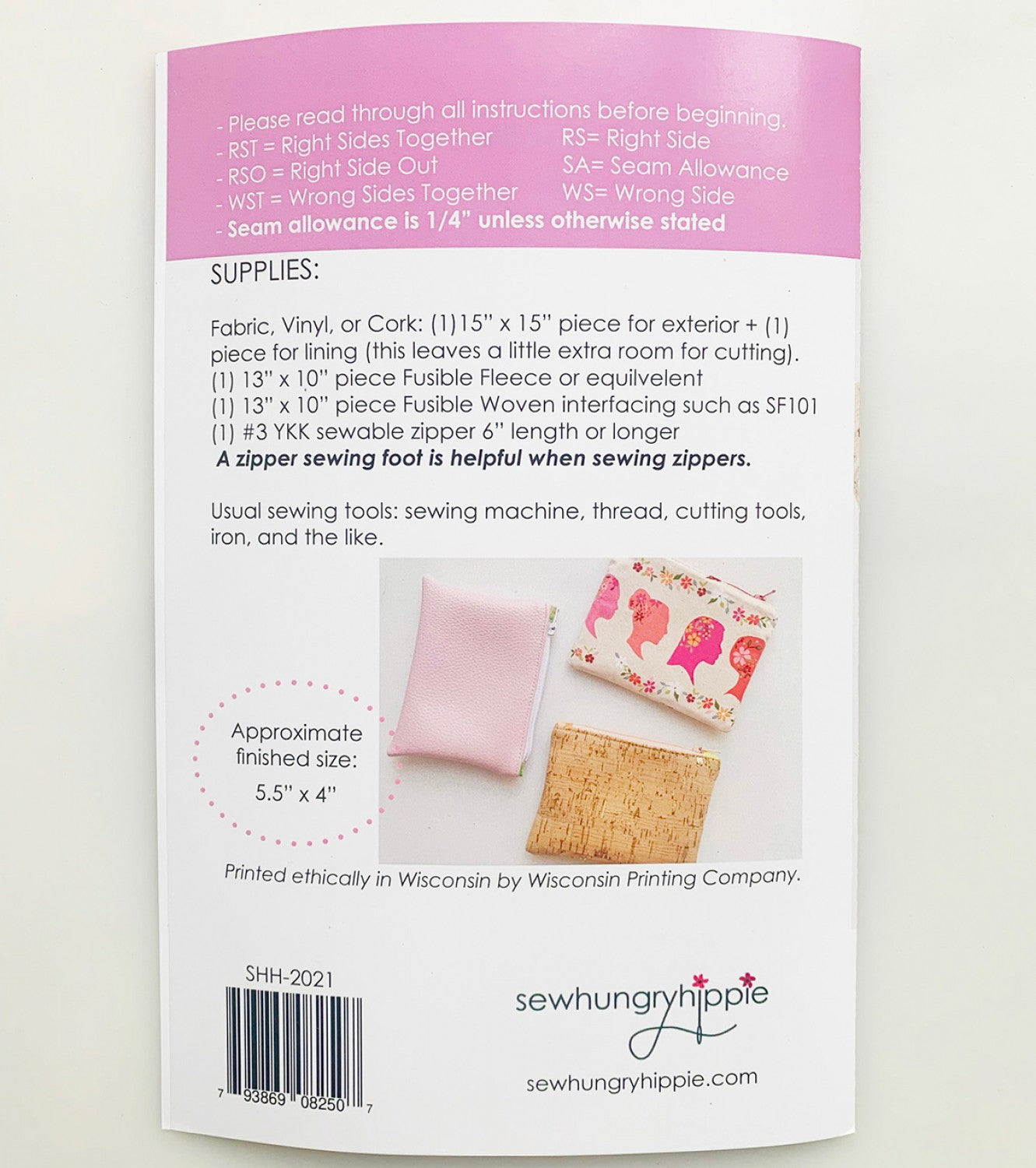 This beginner-friendly pattern is a perfect gateway into learning zipper insertion. Fat quarters can be utilized, or scrap bundles from end-of-bolts. These cute little pouches are fast and finish up at 5.5in wide x 4in tall. They fit easily and discreetly into a purse, a backpack, even a pocket. Kit this pattern with various materials- they are easy to sew up in vinyl and cork. Time for change zippy pouch can be used for much more than storing coins; think personal care items, credit cards and id, facemask holders, key holder, or any smaller trinkets that can get lost in a bag.