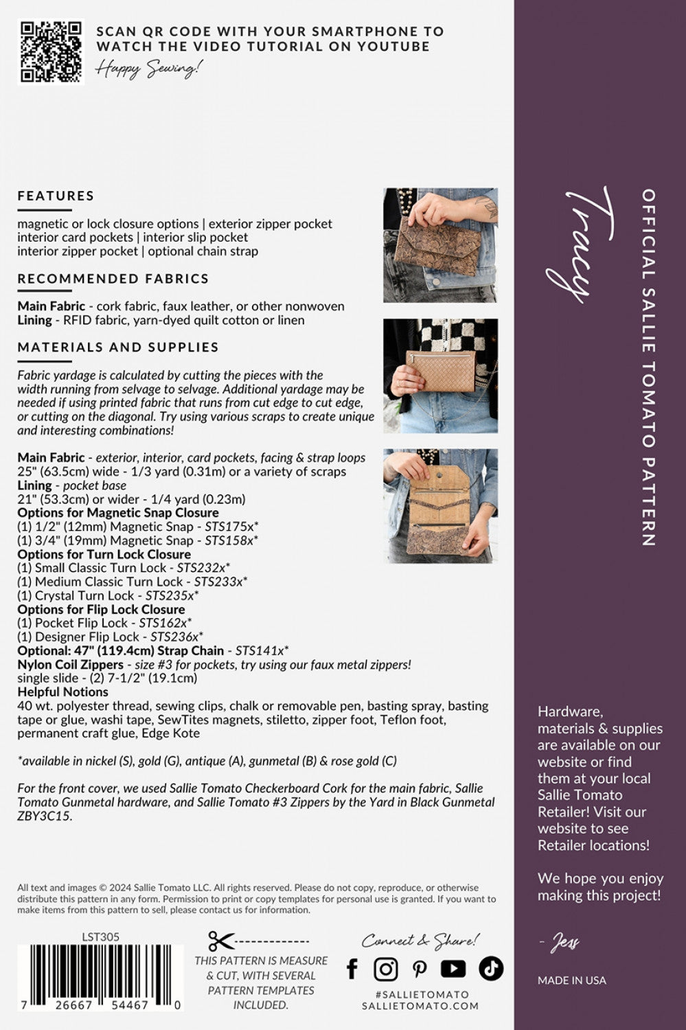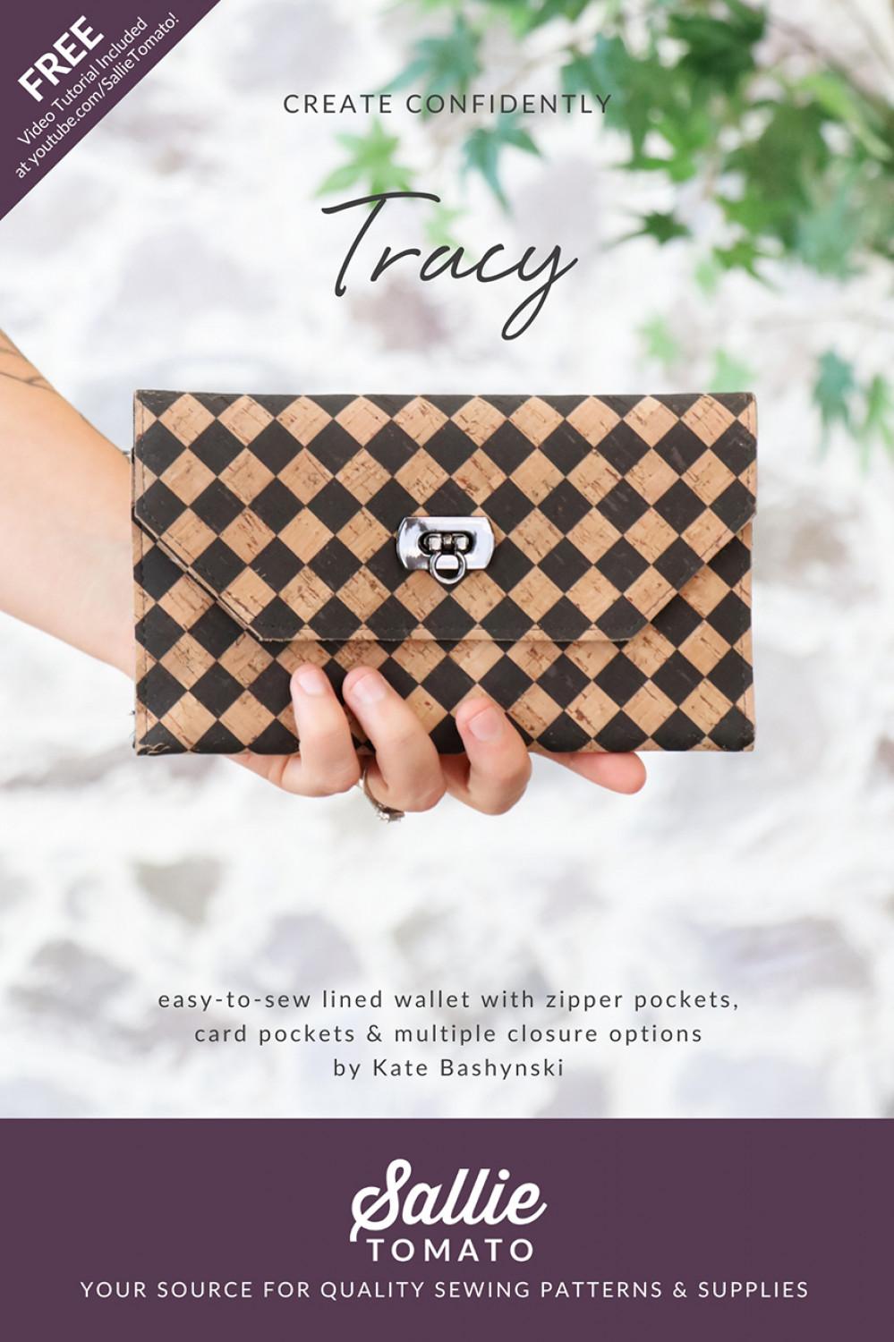 This lined wallet pattern offers several card pockets, two zipper pockets, and an interior slip pocket. Add your favorite wallet closure and optional chain strap for more style! Our pattern is inspired by the meaning of the name Tracy: brave, more powerful, superior.