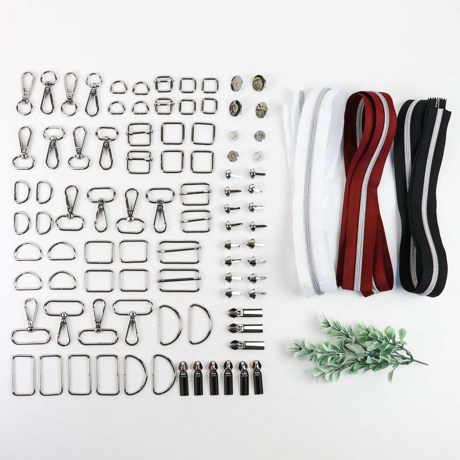 Are you tired of not having the hardware you need for bag making on hand? In an effort to help get rid of that frustration, we've put together an organized box set of essential purse hardware! That way, you can spend less time searching for hardware and more time creating! Our Ultimate Box Bundle of Essential Hardware and Zippers comes in five finishes, nickel, gold, antique, gunmetal, and rose gold. Choose the boxed set with the color you use the most, or get multiple boxes to grow your stash of bling!