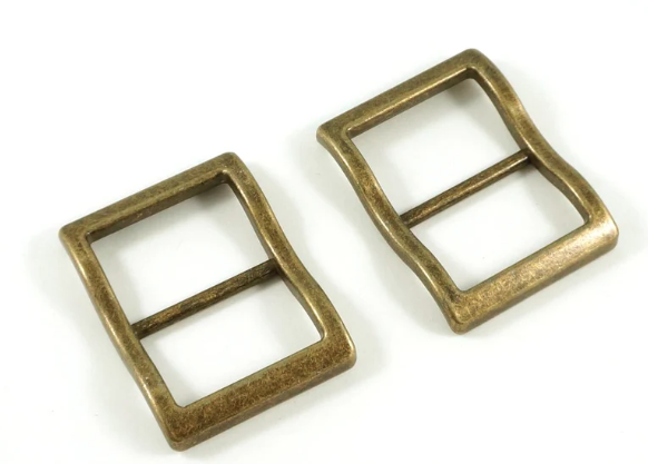 These extra wide strap sliders, sometimes called "large mouth" or "wide mouth" sliders will work on thick leather, cork or vinyl bag straps! Make adjustable straps on all of your handmade bags! These have a flat profile, with a slightly rounded corner, so we think they will work well with both our FLAT rectangle rings, or our rounded d-rings and swivel snap hooks. Sold in packs of 2. Antique Brass.