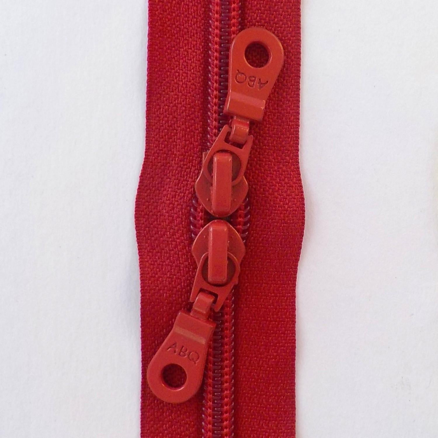 Perfect for making larger sized bags. Two large zipper pulls open from the center out with stops on both ends. The double jointed pulls make it easy to open the bag from virtually any angle. Easy to sew in because of the slightly wider #5 zipper coil.